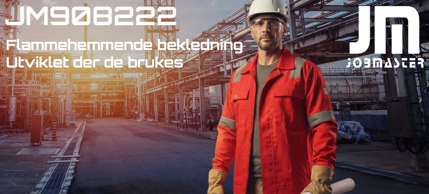 JM 908222 Antiflame jakke produsert i 350gr. Øko-Tex 100 metervare som er 99% bomull/1% AS Castor Xinke Protective. Antistatisk pyrovatexbehandlet materiale som er flammehemmende i hele plaggets levetid. Jakken leveres med YKK glidelås og 50mm reflekser.