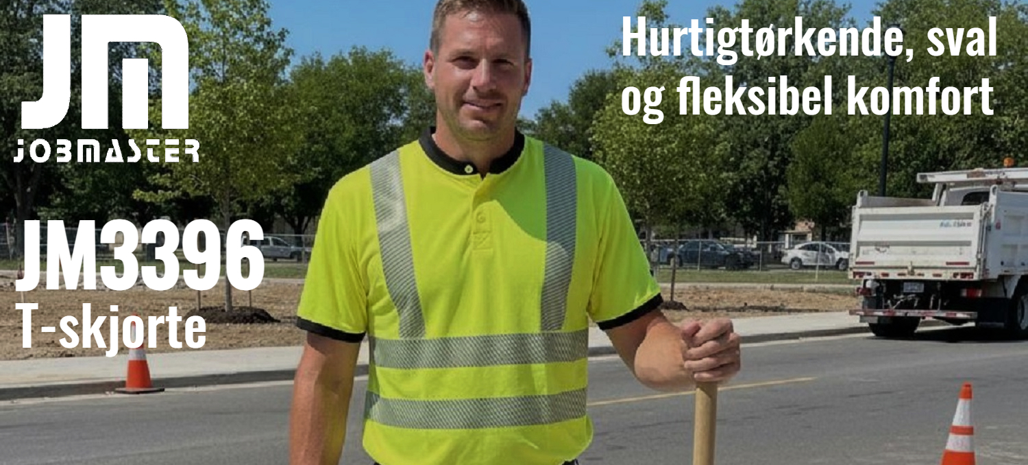 Jobmaster JM3396 hivis gul T-skjorte med kort arm, rund hals og knapper. Produsert i hurtigtørkende, fukttransporterende og fleksibel polyestertrikot med bomullsfølelse. God passform med noe stretch. Trykte, skråstilte reflekser for optimal synlighet og komfort.160 g/m2.