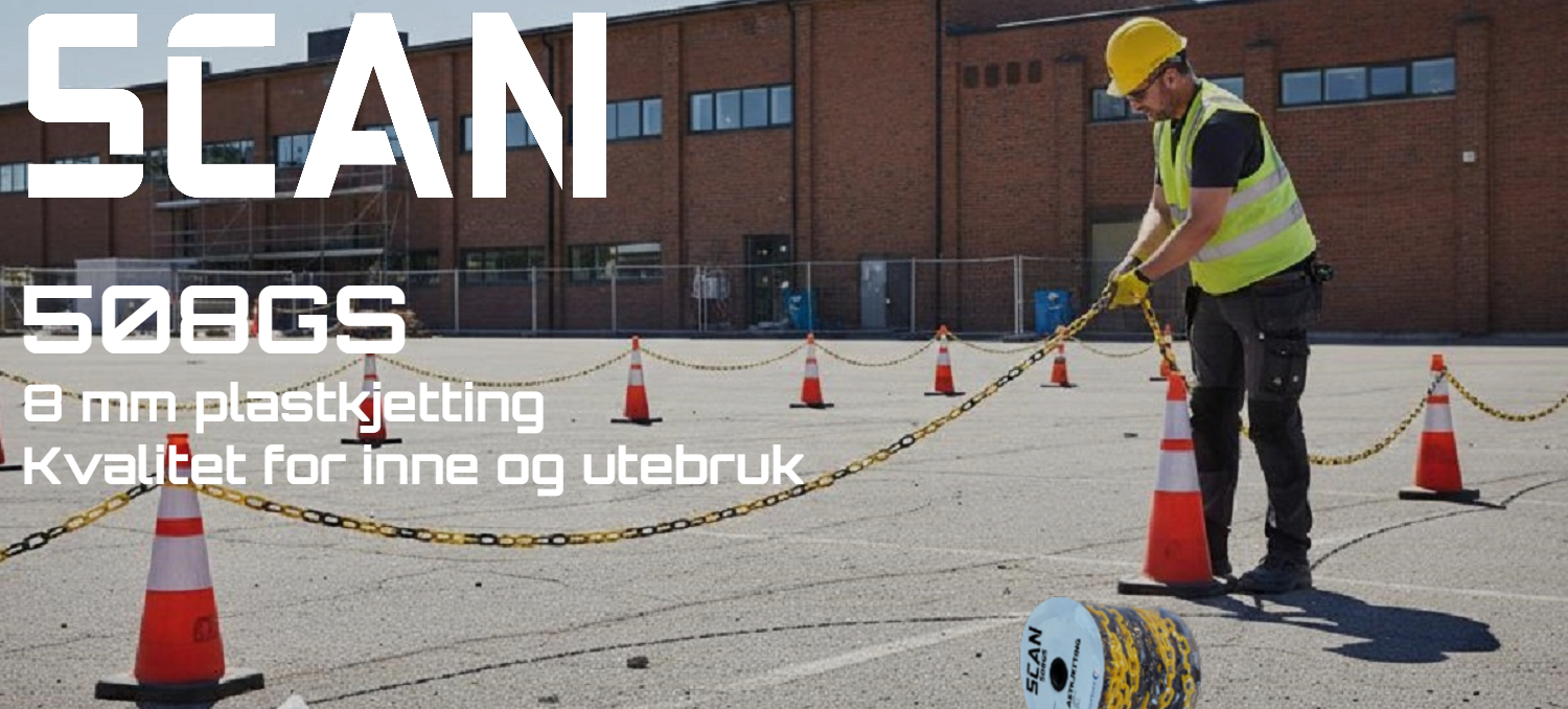 Gul/sort 8 mm solid plastkjetting på spole for inne- og utebruk. Til avgrensning, sikring og markering av bl.a. arbeidsområder, innhegninger, parkeringsplasser, messer, sportsarrangementer osv. Fargefast og UV-bestandig. Lett og sterk. Selges i hele spoler.
