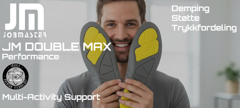 JM Double Max Performance ergonomiske innleggssåler gir riktig støtte, justering og demping til føttene.