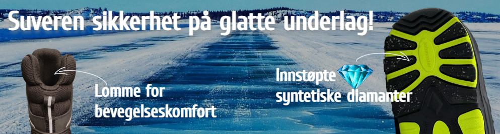 - Yttersåle: To-lags PU og gummi, med istøpte syntetiske diamanter